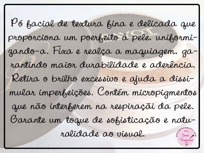 Esse pó translúcido é perfeito! Achei o máximo ter a pigmentação bege, pois assim não corremos o risco de ficar com a “cara branca”. Quando uso BB Cream da Payot (